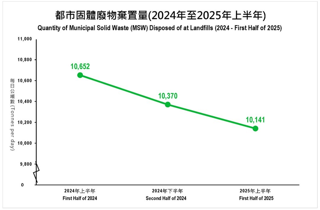 有人擔心政府暫緩實施垃圾收費,便無法阻止垃圾棄置量上升。事實是去年5月宣布暫緩後,市民在減廢回收方面的意識和參與度仍然是有增無減。垃圾棄置量繼續下降,由2024年上半年平均每日10 652公噸減至今年上半年平均每日10 141公噸,一年間已經減少了約5%,和2021年相比平均每日減少了超過1 200公噸。